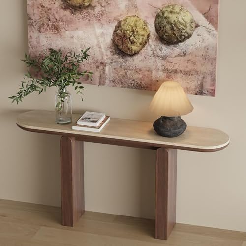 Sleek, simple, and elegant, the Lancaster Console Table embodies minimalist design with a touch of natural warmth. Featuring a smooth, rounded-edge tabletop in a light oak finish paired with bold walnut-toned slab legs, this piece blends contrasting wood tones to create a modern yet timeless look.